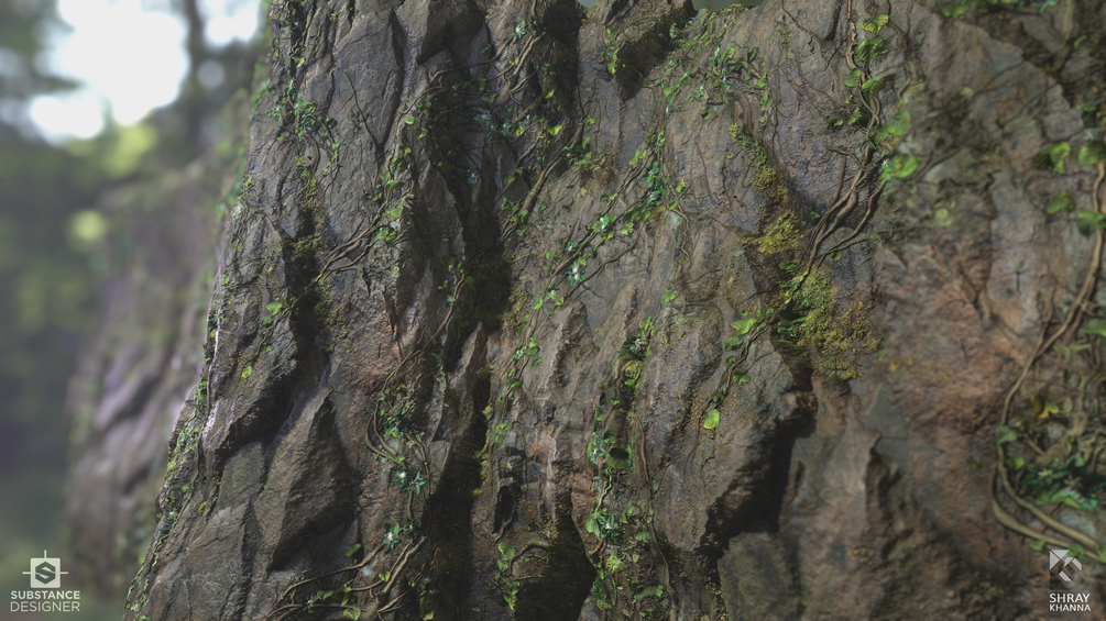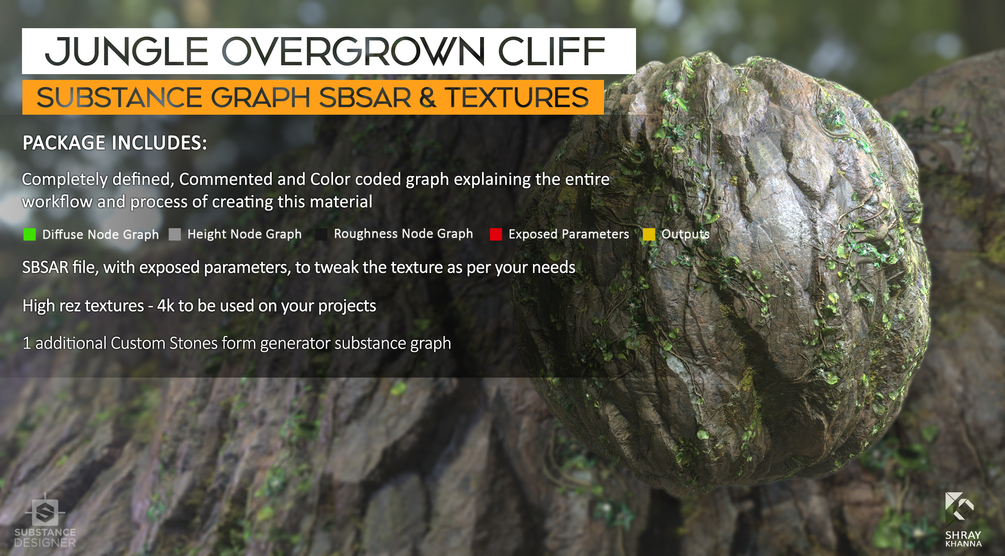 Jungle Overgrown Cliff material, Fully commented Substance graph and its SBSAR file to study and to use as per the License. It's based on PBR workflow and consists of all the required maps.